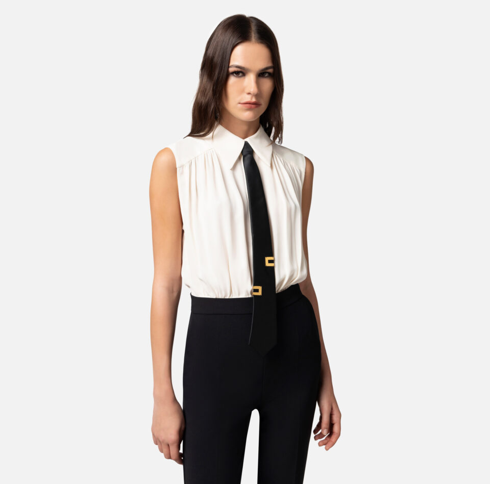 Shorts in crêpe con morsetto e patte