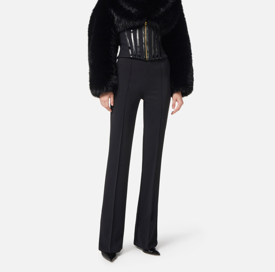 Pantaloni a zampa in crêpe con placca logo