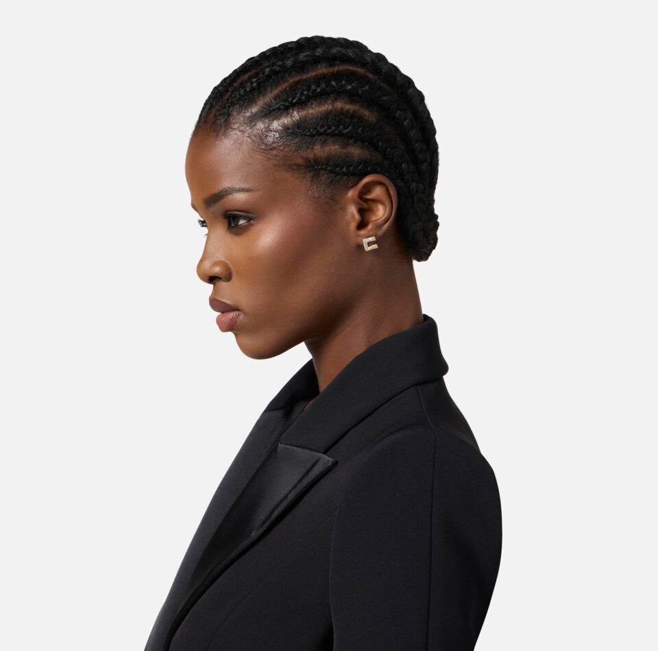 Volumi avvolgenti definiti dalla cintura alta e in tono, con texture a stampa cocco che aggiunge carattere e completa di fibbia ad ardiglione con logo in metallo dorato.