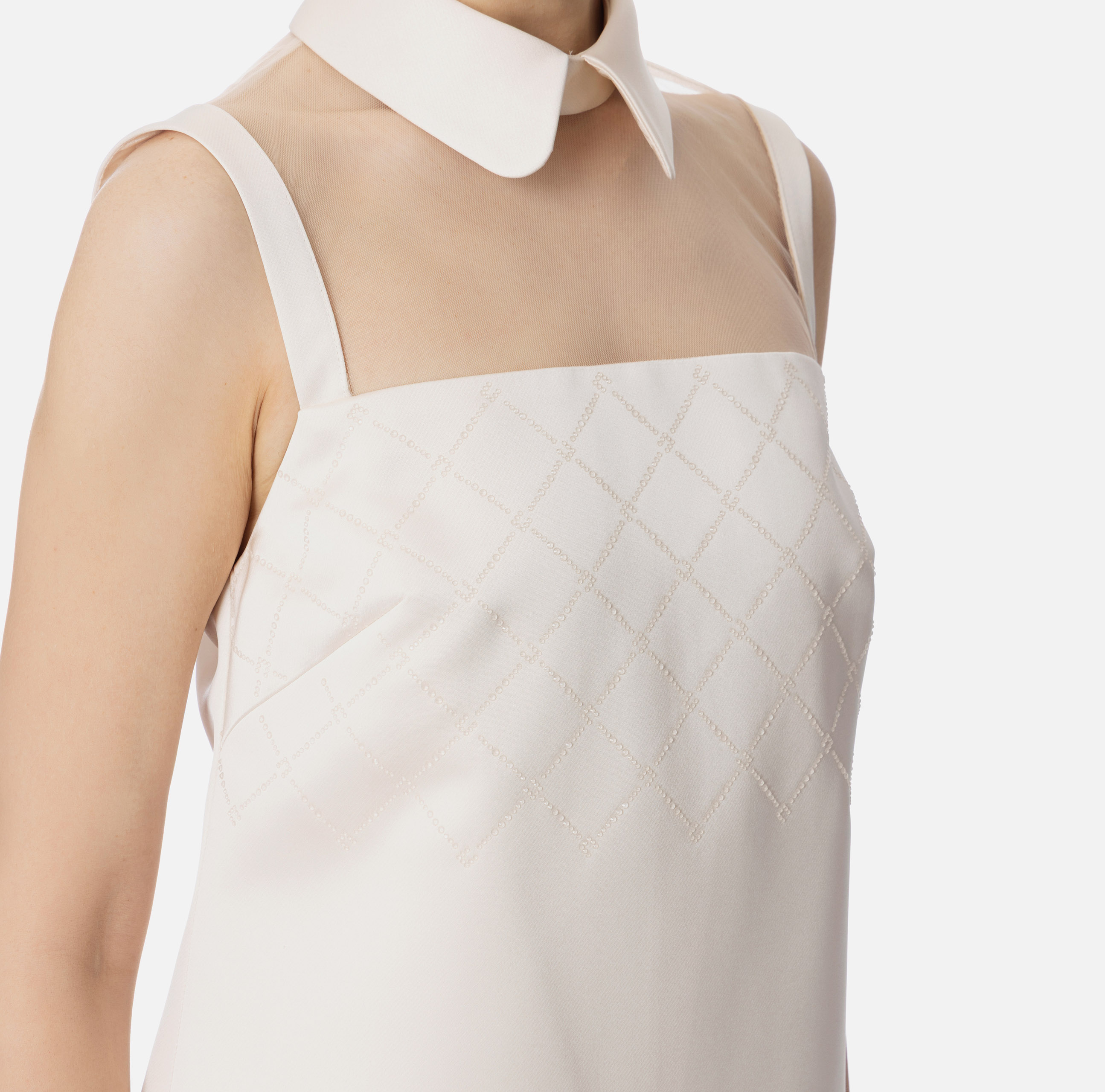 Lasciati incantare dall’eleganza di questo abito ELISABETTA FRANCHI AB79652E2. Realizzato in duchesse e senza maniche, presenta un colletto in tulle che crea un effetto see-through sensuale. Il disegno a losanghe e le applicazioni sul davanti aggiungono un tocco di stile, mentre il logo sul fondo della gonna testimonia la sua autenticità.