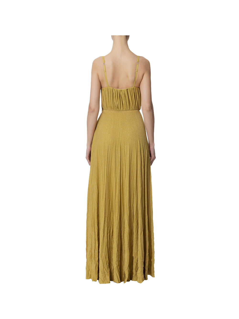 Sensuale e raffinato, una perla della collezione Red Carpet dedicata ai tuoi eventi più importanti, questo abito Elisabetta Franchi in jersey lurex è caratterizzato da spalline sottili e coppe sul busto, con un distintivo applique floreale ricamato su un fianco. La gonna presenta uno spacco laterale e una texture stropicciata alla base, che crea un effetto foliage, rendendolo elegante e dinamico. Aggiungi giusto qualche tocco di luce con i bijoux e distinguiti nelle tue personali passerelle.