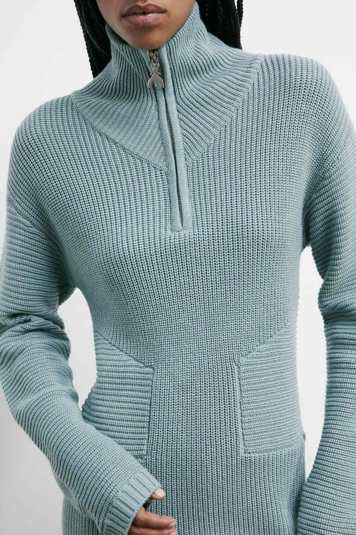 Abito mini della linea “ESSENTIAL” realizzato in maglia lavorata in costina, con collo alto e zip frontale. Ispirato al design di un maglione boyish dal taglio over, è la soluzione cosy per un look effortless da tutti i giorni. Abbinalo agli stivali cavallerizza crackle per un contrasto glamour.