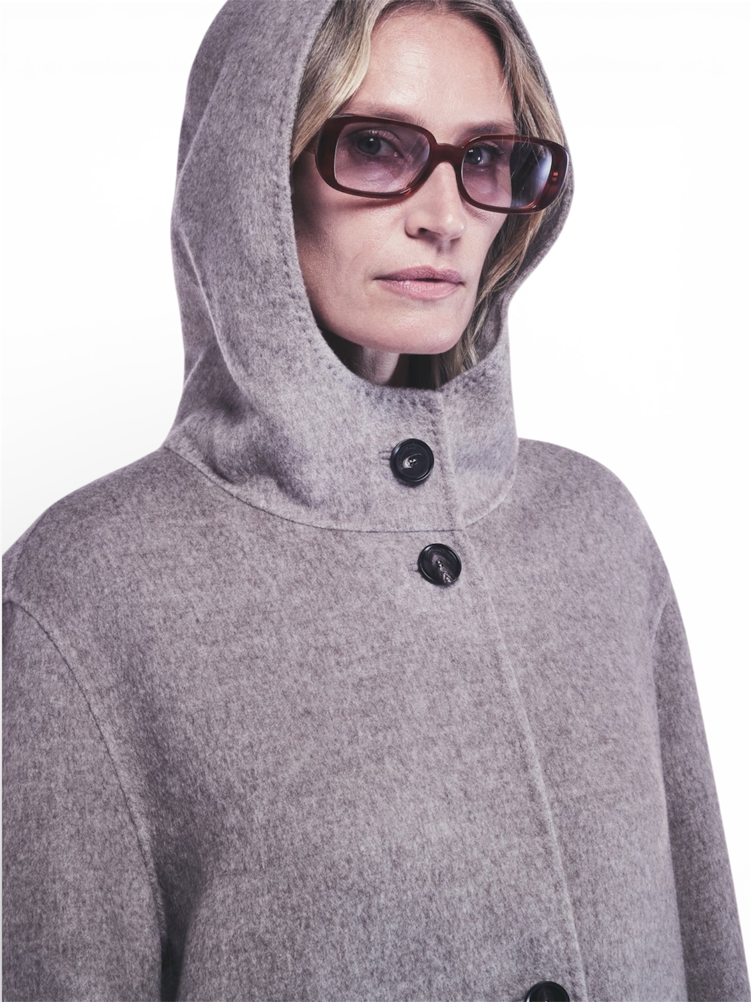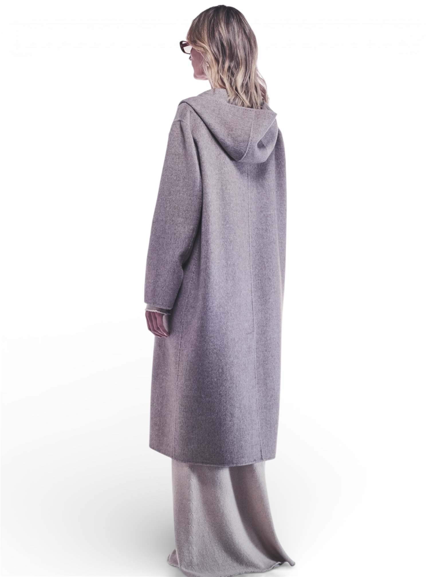 CAPPOTTO LUNGO IN PANNO LANA E YAK, CON CAPPUCCIO, LINEA DRITTA E TASCHE APPLICATE. CHIUSURA CON BOTTONI, MORBIDO E CALDO.