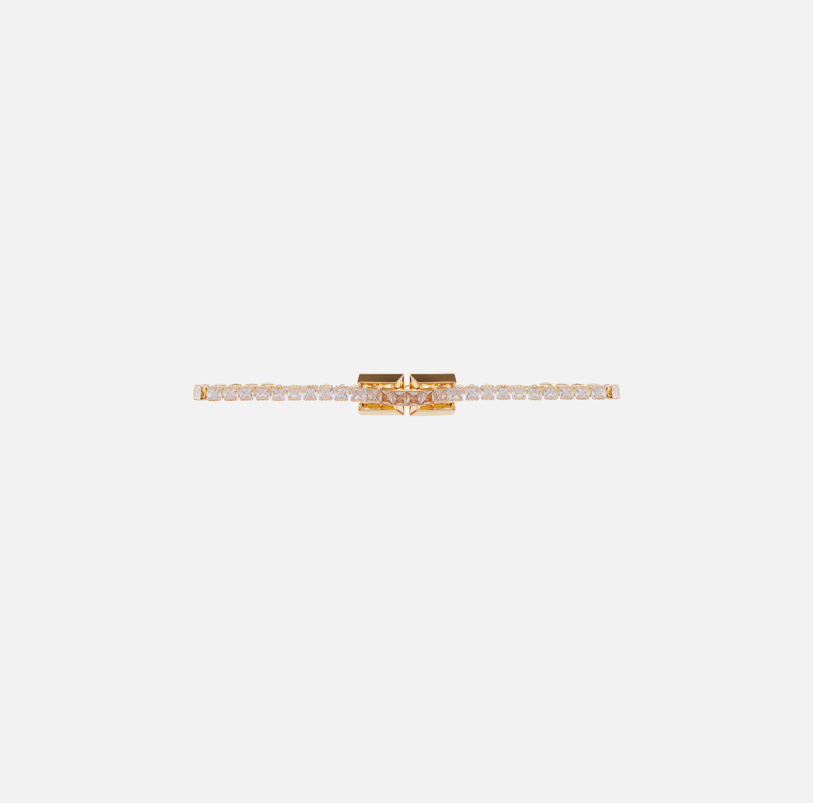 Collana composta di strass con chiusura in catena. È arricchita dal dettaglio con logo 3D in metallo dorato, a decorare il davanti.