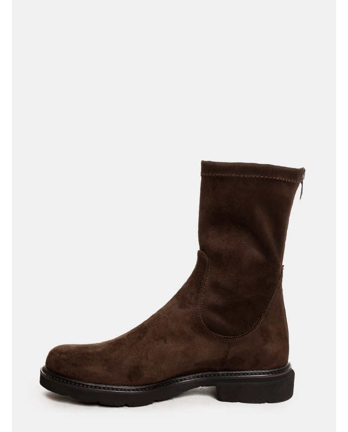 Anfibio stretch by evaluna in morbida pelle camoscio di colore moro. Zip di chiusura sul retro e gomma extralight.