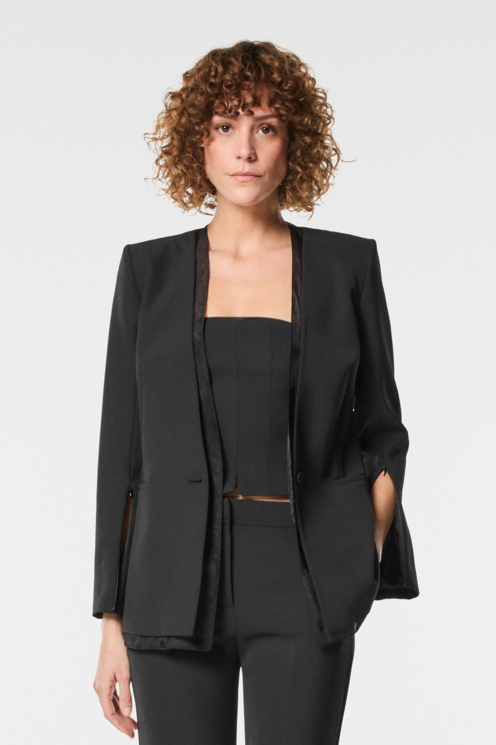 Giacca monopetto AVORIO in cady, impreziosita da un raffinato inserto in organza che dona leggerezza e femminilità. Un capo dal design elegante e contemporaneo, ideale per look chic informale o abbinamenti più sofisticati. Perfetta per aggiungere un dettaglio distintivo e ricercato agli outfit di stagione.