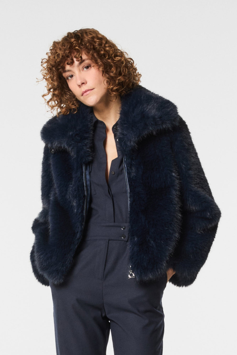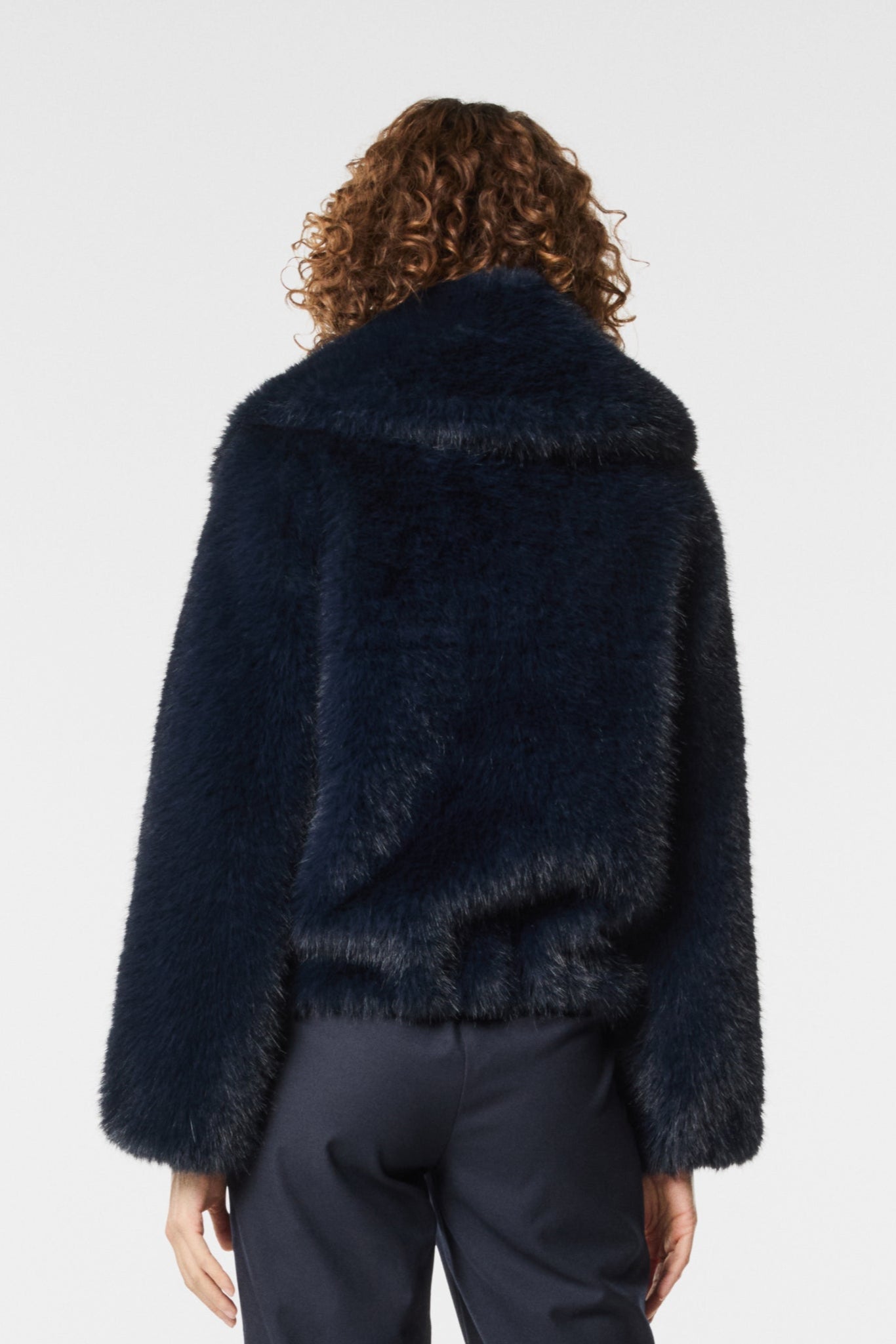 Giacca in ecovolpe dal design elegante e versatile. Morbida e calda, aggiunge un tocco di raffinatezza ai look quotidiani. Perfetta per outfit casual-chic che uniscono comfort e femminilità