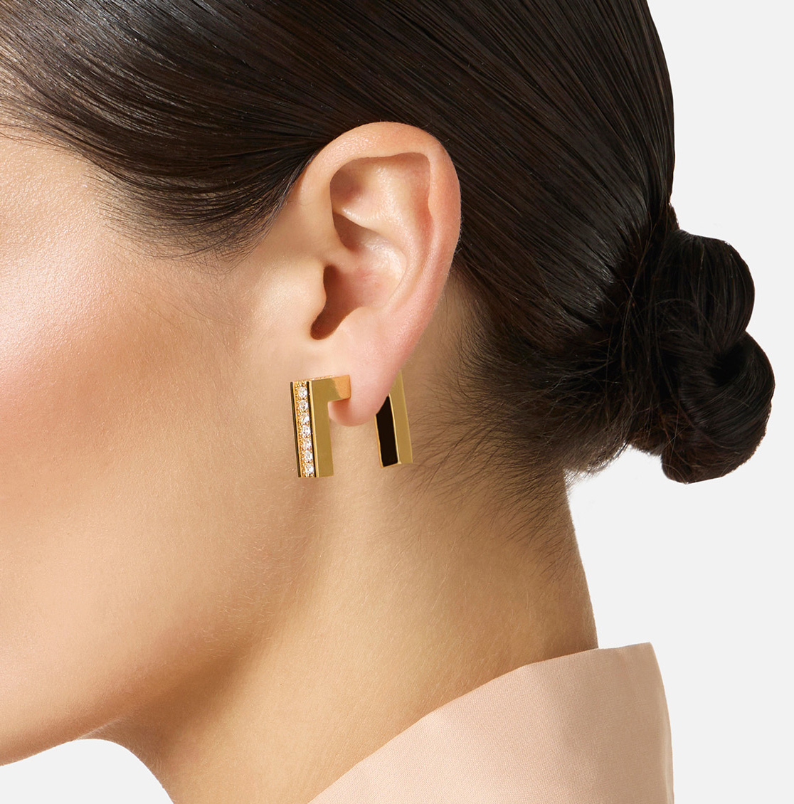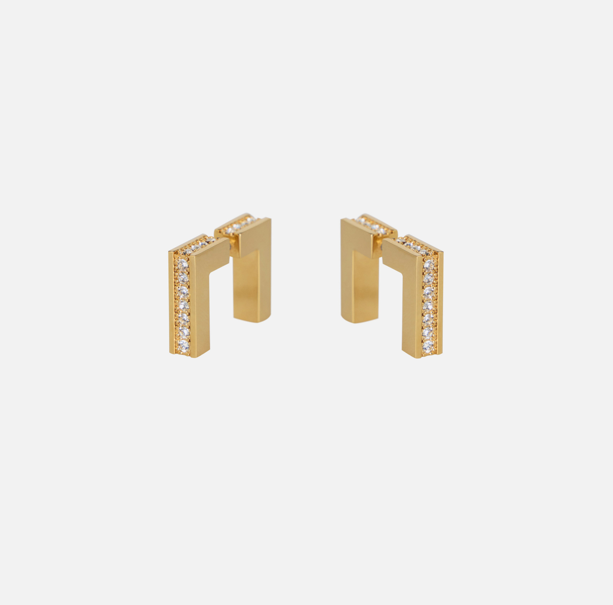 Orecchini realizzati in metallo con finitura dorata. Dal design a barretta, sono illuminati da dettagli di strass. Chiusura con ago.