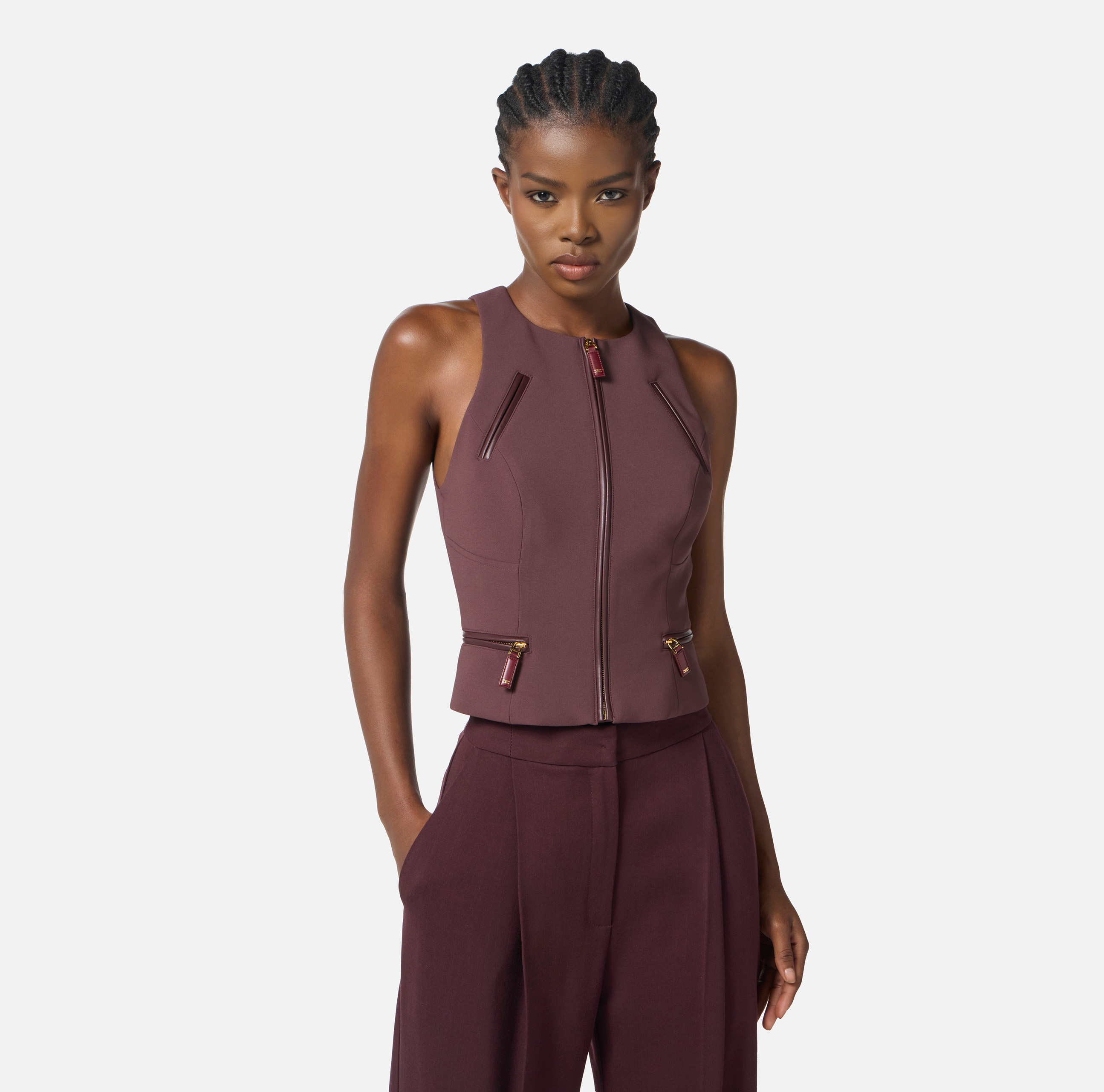 Top in doppio crêpe dalla vestibilità aderente. Con scollo all’americana, ha dettagli con zip incorniciati da filetti in tono. Parte della collezione Essential, per costruire il guardaroba perfetto.