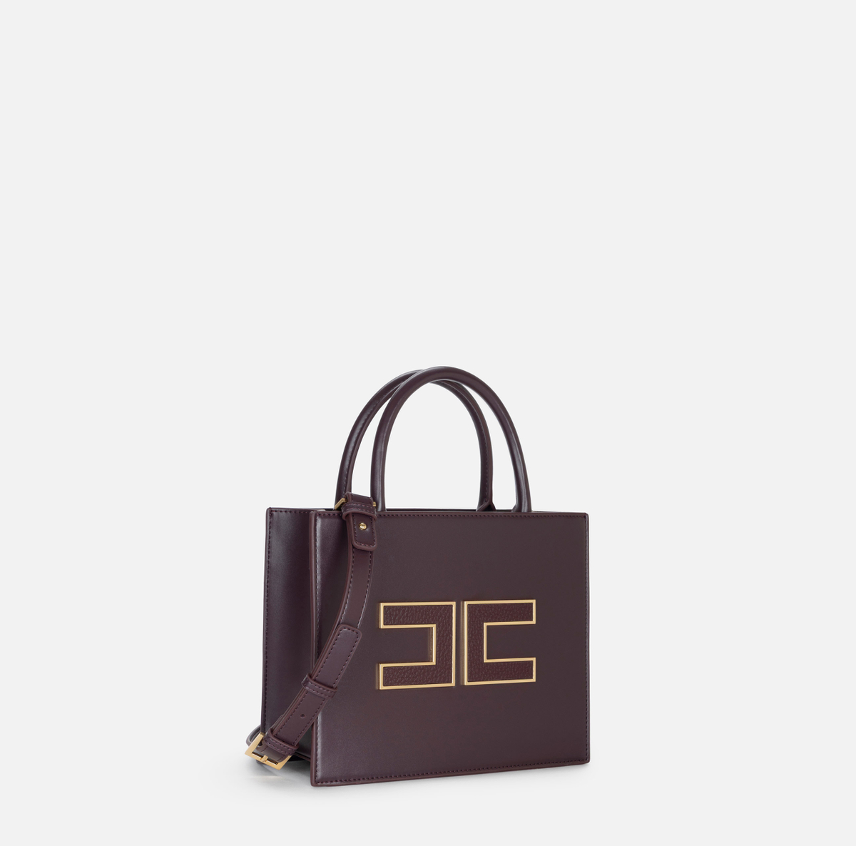Borsa Elisabetta Franchi rigida con logo dorato centrale munita di tracolla removibile .