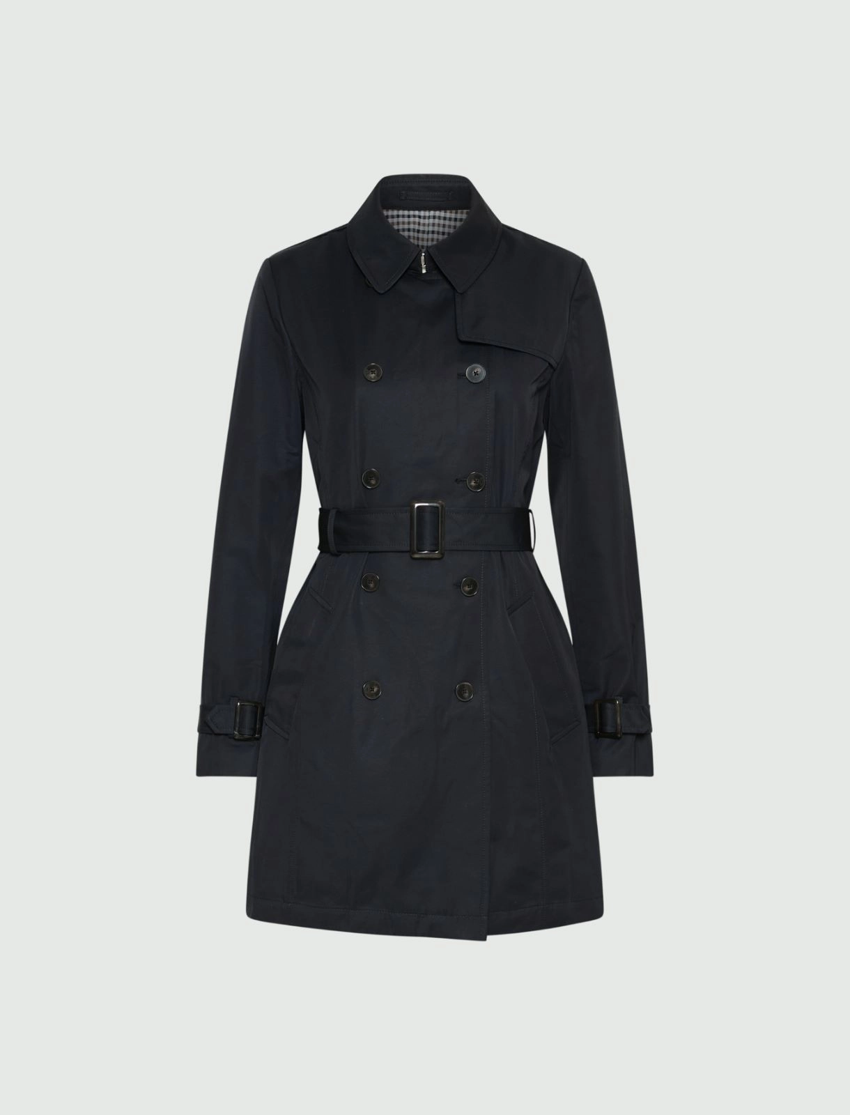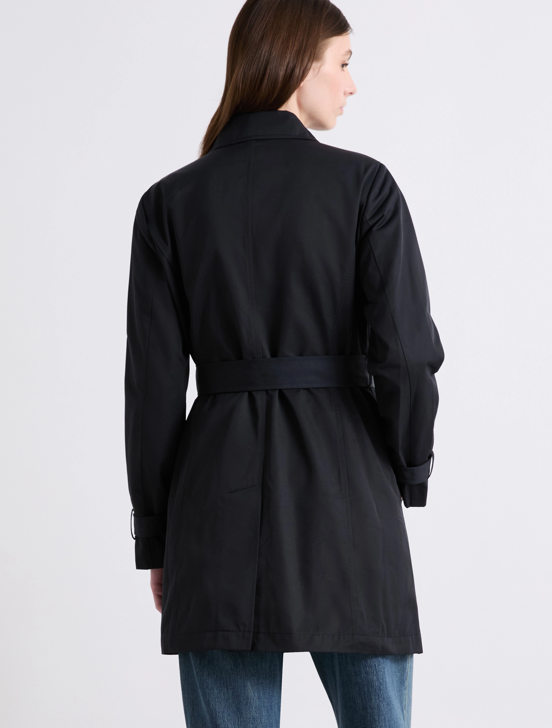 - Trench in cotone tecnico con parziale fodera interna