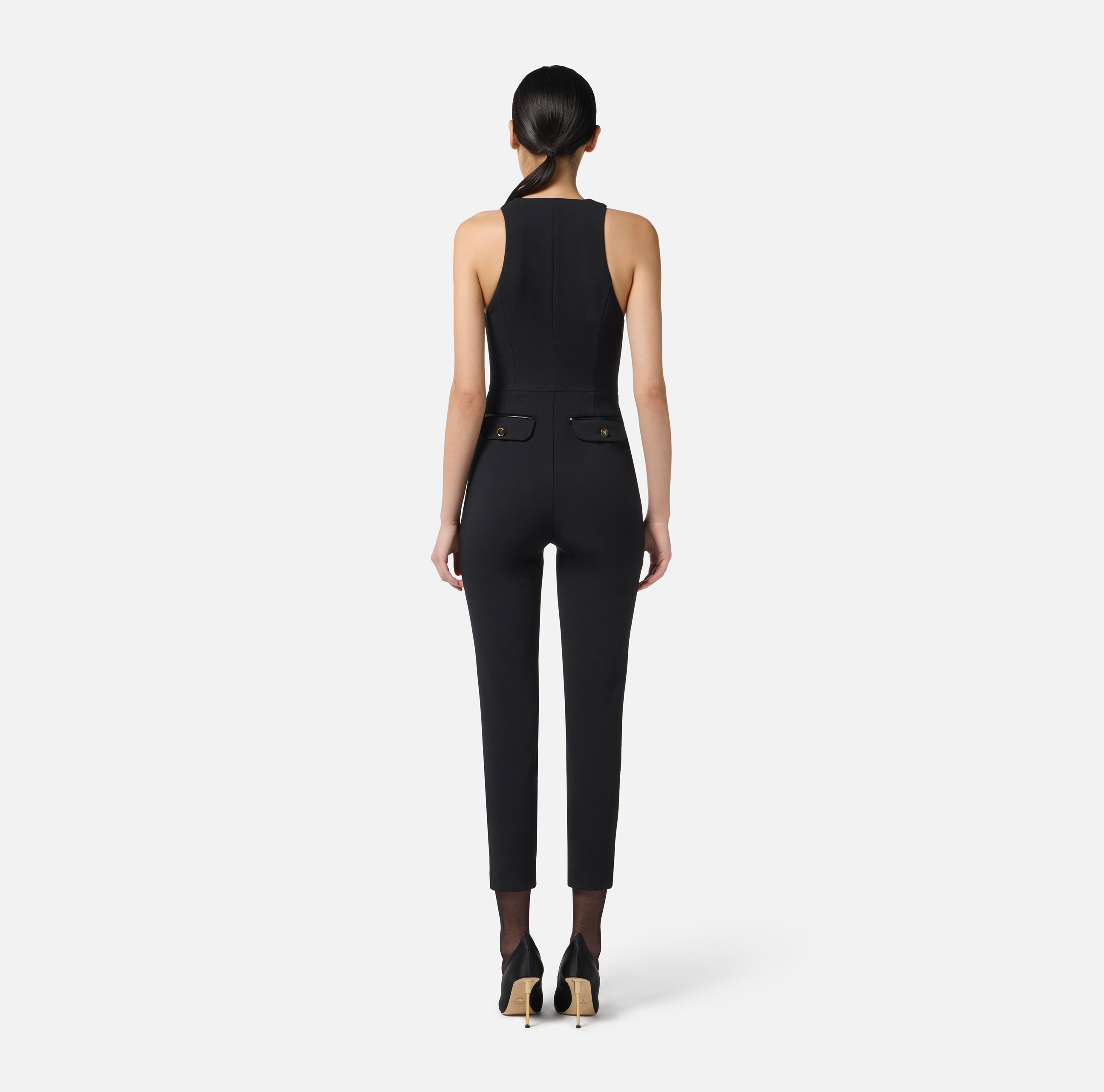 Tuta in doppio crêpe dalla vestibilità aderente. Con scollo all’americana, ha dettagli con zip incorniciati da filetti in tono. Le patte con bottone sul retro completano il capo. Parte della collezione Essential, per costruire il guardaroba perfetto.